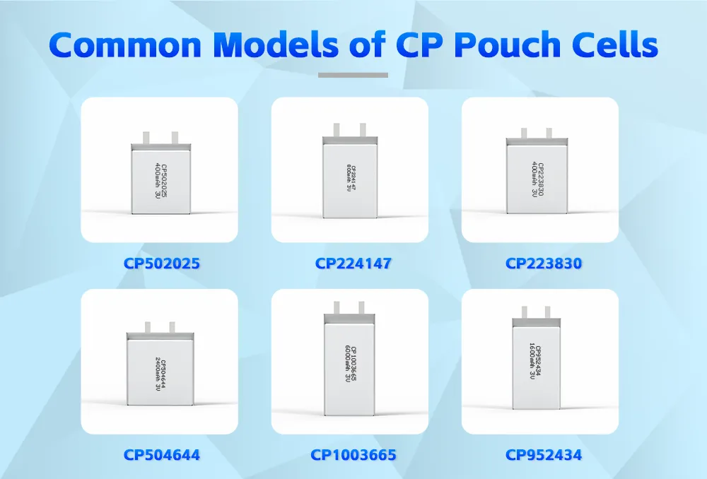 Utilizing a composite thin-film casing, these batteries offer flexible structure, lightweight design, and high safety. They can be customized to fit specific product spaces and are widely used in smart devices, medical equipment, and various customized products. Common specific products include: CP502025, CP224147, CP223830, CP504644, etc.