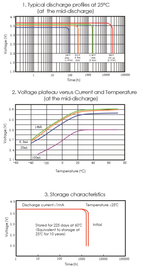 • 최대 방전 전류: 100mA(연속), 200mA(펄스)