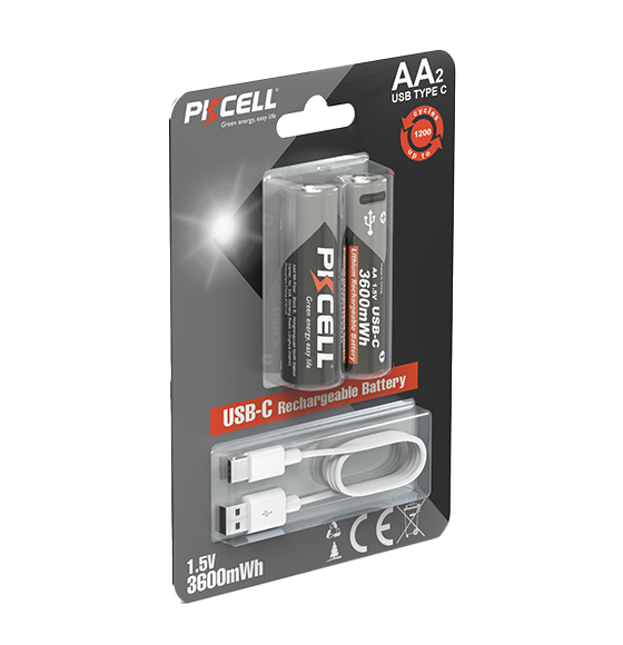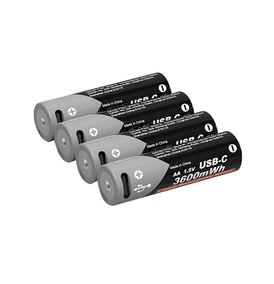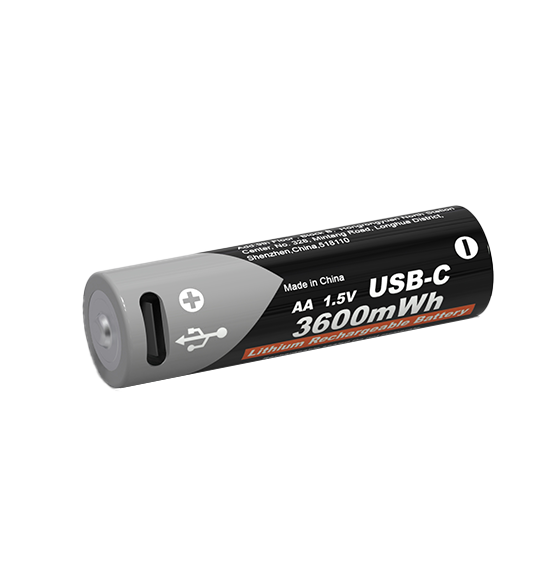 USB-C 리튬 충전식 배터리 1.5V AA 3600mWh