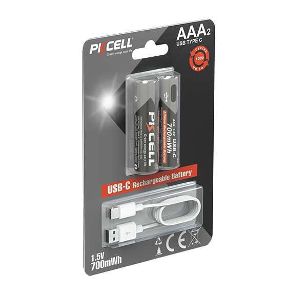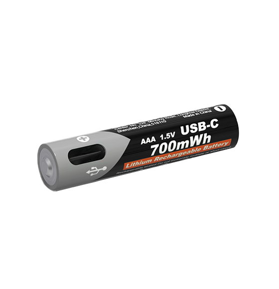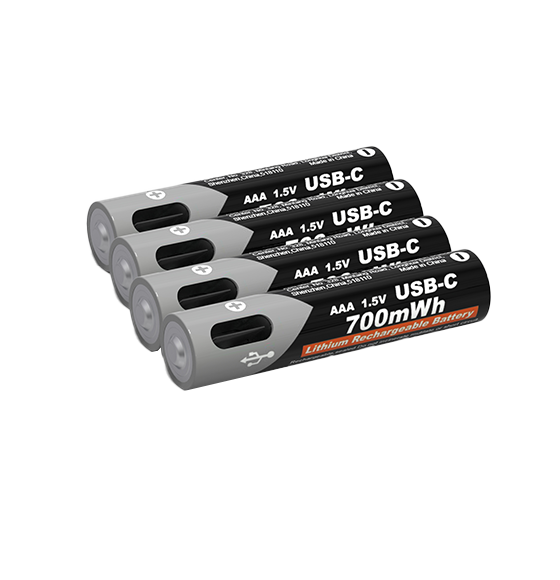 USB-C 리튬 충전식 배터리 1.5V AAA 700mWh