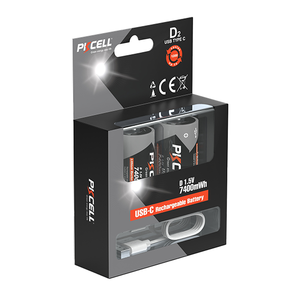 USB-C 리튬 충전식 배터리 1.5V D 7400mWh